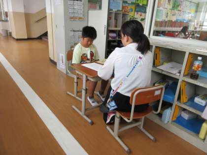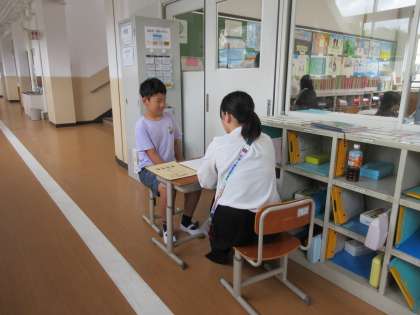 若狭へ宿泊学習に行っていた4年生も、元気に通知票をもらいました。