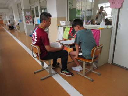 素早く着替えて、通知票をもらいました。