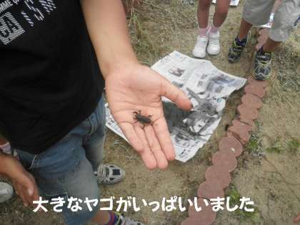 泥の中からヤゴを見つけると,歓声をあげていました。