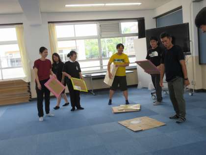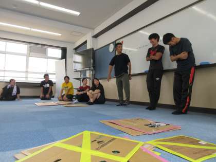 その段ボールを使って、新競技の実施が可能かどうか、どのような工夫をすれば、安全に楽しく協力して競技に取り組めるのか・・・