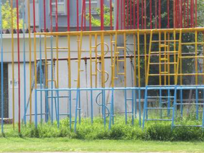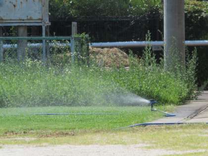 運動場では、芝に水を撒いてくれているスプリンクラーが2つあります。