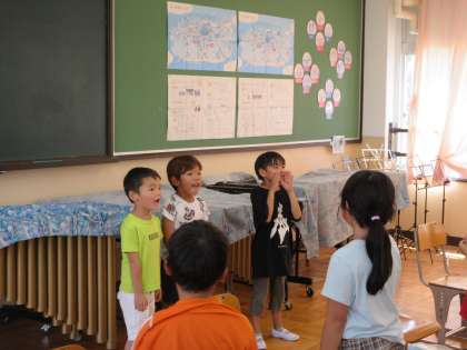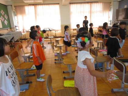 1年生は、今日も「やまびこさん」を元気に歌いました。