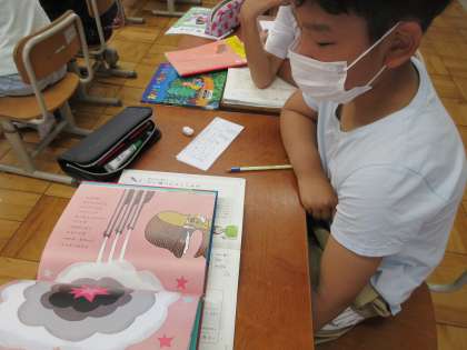 4年生は、1年生に本を読んでもらうための本の帯やポップづくりをしています。