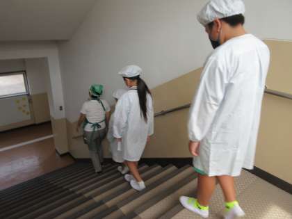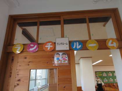 スマイルそうじがある水曜日に、1グループずつ順番にランチルームに集まって一緒に給食を食べます。