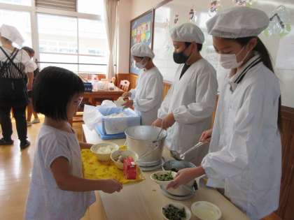 スマイル遊び、スマイルそうじに続いて、今日からはスマイル給食が始まりました。