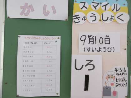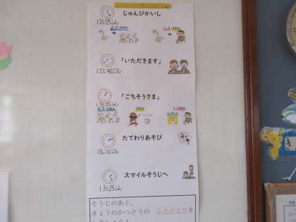 ランチルームには、スマイル給食の流れや、仕事の分担が示してあります。