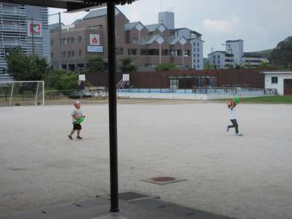 今日も、畑の作物に水をあげる3くみの子どもたち。