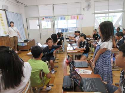 旋律の特徴を感じ取りながら聴いて、気づいたことを伝え合いました。