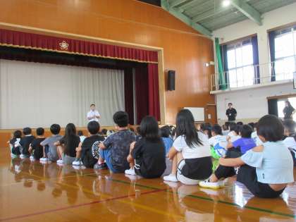 学校への不審者侵入を想定した避難訓練を行いました。