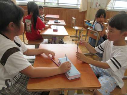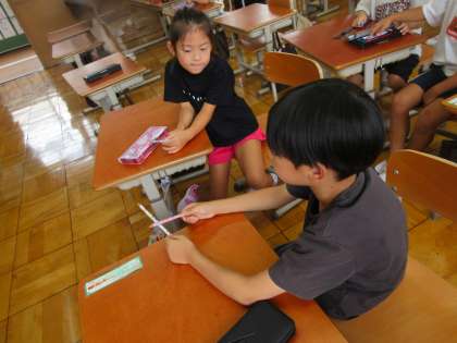 今日は、鉛筆の長さのくらべ方をペアで考えました。