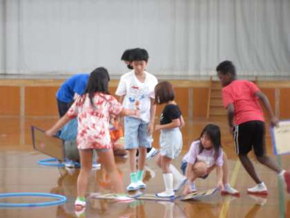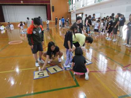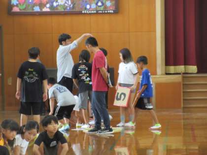 昨日、6年生が実際にやってみて確かめていた新しいたてわり競技。