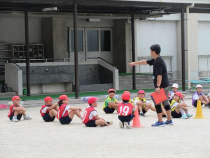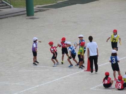 運動会に向けて、1年生と一緒にリレーの練習をしました。