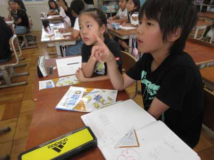 自分で考えたことを、ペアで伝え合いました。