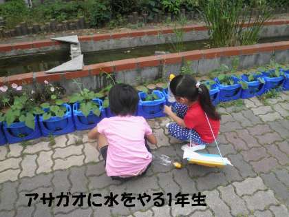 1年生の子どもたちは,毎朝,アサガオに水やりをしています。そして,毎日の観察日記を書いています。