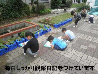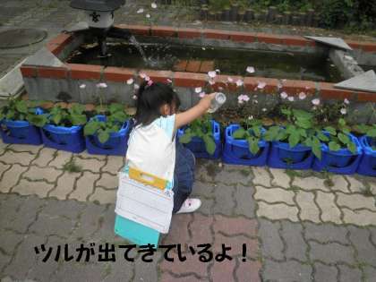 授業公開の関係で他校より少し成長が遅いですが,ツルが出はじめました。子どもたちはしっかりスケッチして,観察日記を書いています。