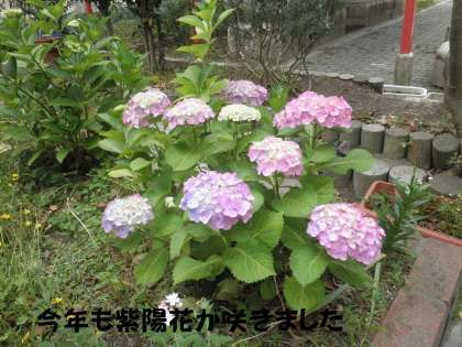 2年前に,中山保育園の園長先生に苗木をいただいて,育てた「紫陽花(あじさい)」が今年も咲き始めました。