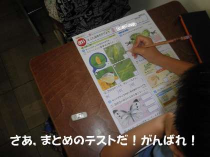 モンシロチョウの観察を続けていた3年生は,今日,まとめのテストをしました。実際に自分たちで観察していたことだから,しっかり理解できていたようで,みんなすらすらとえんぴつを動かしていました。