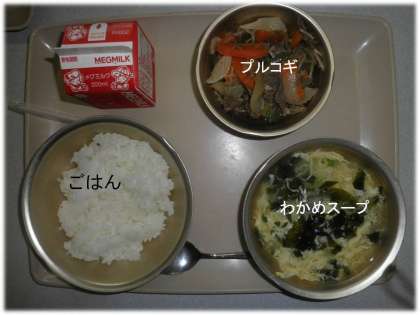 今日の「プルコギ」には,もやしや夏野菜のピーマンが入っていました。