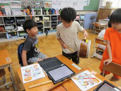 リズムの打ち方がわからない友だちに優しく教えてあげている場面もありました。