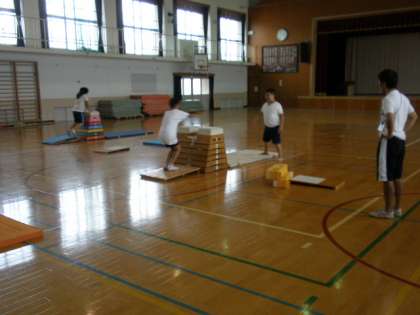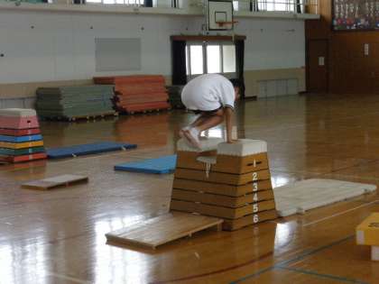 今日は少し難しい閉脚跳びに挑戦しました。怖がらずに全員が意欲的に挑戦しました。見事に跳べるようになった人がいました。