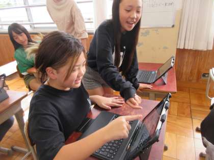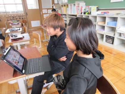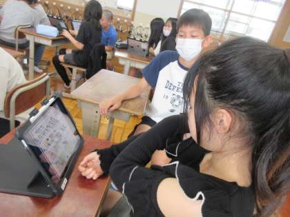今日は、5・6年生が合同で英語の学習です。
