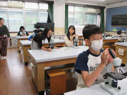 最新のシステムの顕微鏡で興味深く学習をしました。