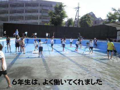 6年生の子どもたちは,よく働いてくれました。暑い日差しが照りつけ,プール清掃には最適の日になりました。