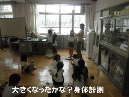 保健室に行って身体計測をしました。身長がぐっと伸びている子どもたちがいてびっくりです。前回(4月)よりも2センチ以上伸びている人がいました。