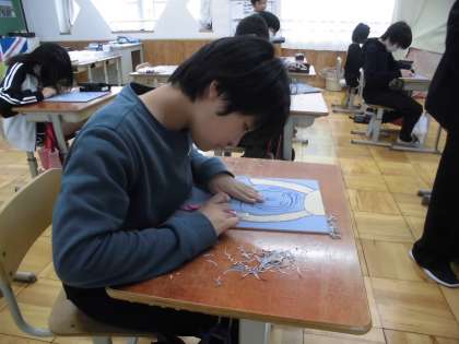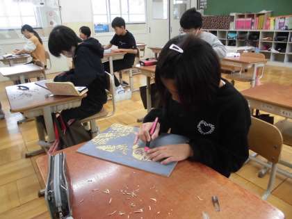 今日も彫ったり刷ったり、丁寧に学習を進めています。