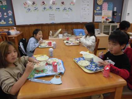和やかにお話をしながらの給食。