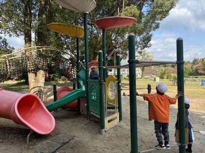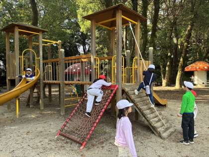 1.2年生のなかよしグループで仲良く園内を回ります!