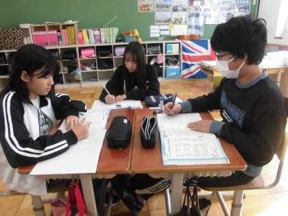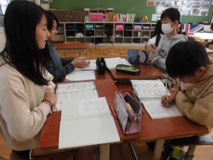 グループで気づいたことを出し合っています。