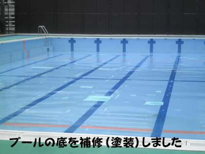 プールの底や壁面の塗装がはがれて,見苦しくなっている部分を,プール専用のペンキで塗りました。少し,色が違いましたが,月曜から,きれいになったプールで低学年の水遊び学習がはじまります。