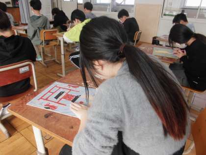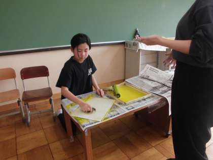 2部屋に分かれて彫ったり、刷ったり頑張っています!