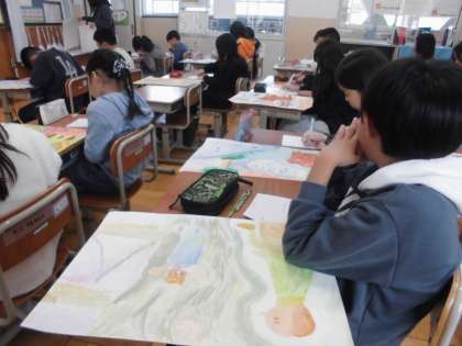 自分の絵の工夫したところを伝えたり、友だちの絵のいいところを伝えたりしました。