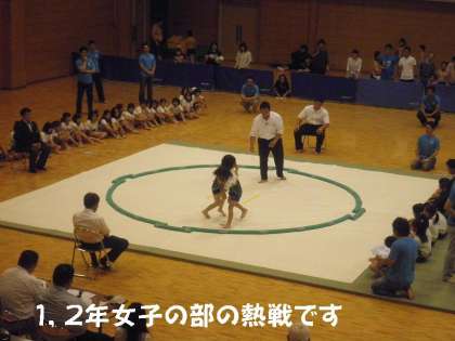 1,2年の女子の部に出場した醍醐西っ子は粘り強い相撲を取って,会場をわかせていました。