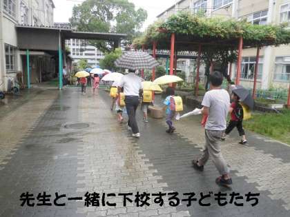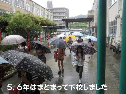 今日は,台風4号接近のため,支部10校の小学校は,授業を午前中で打ち切り,完全下校しました。