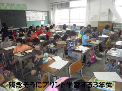朝,3年,4年の教室をのぞくと,子どもたちは,少し曇った表情で勉強していました。