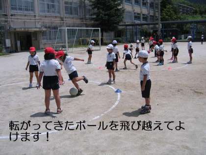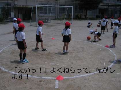 というめあてをよく聞いて,上手にボールを転がしたり,よけたりしていました。