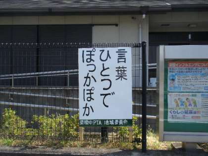 「言葉ひとつでぽっかぽか」と書かれています。小中連携して,声かけの大切さ,つまり,地域の子どもは地域で育てる,地域全体で子ども成長をたちの見守っていくことの大切さを訴えていただいています。