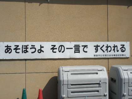 また,本校の正門を入った校舎の壁には,数年前に栗陵中学校区の地域生徒指導連絡協議会さんが「あそぼうよ その一言で すくわれる」の看板も設置していただいています。本当にありがたいことです。