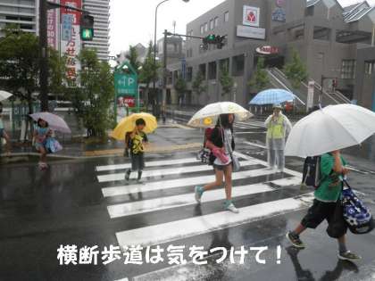 普段は,横に広がり注意されることもあるのですが,今日はカサをさしてほぼ一列になって登校できていました。集団登校遅れの子どもたちもほとんどいませんでした。