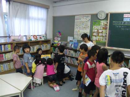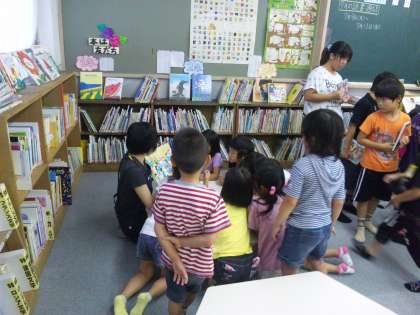 中間休みに,雨が急に降ってきました。その影響か,たくさんの子どもたちが図書館にやってきました。