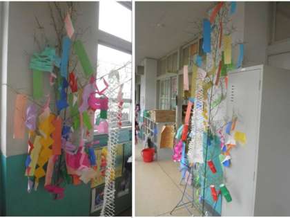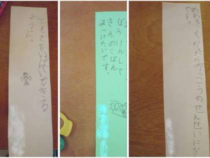 そして,1組も2組も願いをこめて笹につけました。