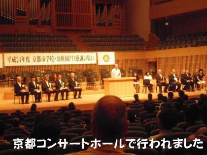日頃のPTA活動に感謝の意を表すために,京都市教育委員会主催で全市の幼・小・中・高・総合支援学校のPTA会長さんをはじめ,役員さん,子どもたち,そして,各学校の校長が集い,行われました。