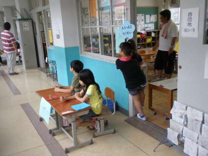 子どもたちは,前半後半に分かれ,各ブースの当番活動をしたり,お客さんで回ったりしています。たてわり活動で,どの班もいい雰囲気で楽しんでいます。6年生がしっかりリードしてくれています。