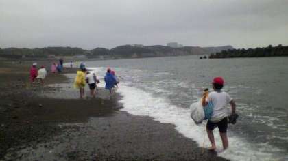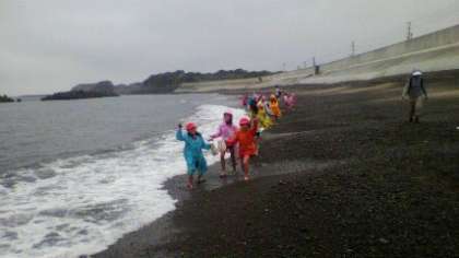 活動予定では,麦崎で磯観察を済ませて,『みさきの家』に帰るときに,大野浜で砂を使った『造形遊び』を行う予定でしたが,雨が降ってきたため,予定していた『造形遊び』を中止しました。