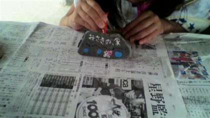 昨日,大野浜で拾った石を使って,思い出の作品を作ります。