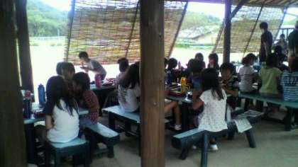 子どもたちの笑顔が絶えない昼食です。三日間の集団生活で食べ方や片付け方マナーも上手になりました。