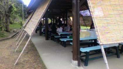 場所は,芝生広場の横の東屋です。やっぱり最後は屋外昼食ですよね!!